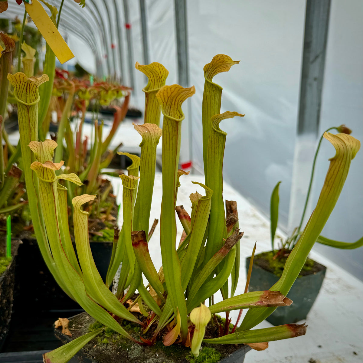 Soil and Repotting: We prefer a mix of four-part fertilizer-free peat moss to one-part perlite. You can add our pre-made mix to your order here. You do not need to repot your plant when you receive it from us for at least a year, and we recommend against it during the spring-summer months. Repot Sarracenia every 1-3 years in winter when they are dormant. Avoid placing in excessively large pots; size up only a few inches at a time. They do well in tall pots. Soil can also develop a swampy smell, especially right after shipping, when the plant is wrapped in plastic and sealed. This is normal; these plants grow naturally in bogs and swampy conditions, and peat moss can develop a bit of an anaerobic smell, but this does not indicate a problem with the soil.