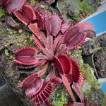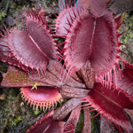 Growth Habit: Venus flytraps are low-growing bog plants native to North and South Carolina. These plants grow their traps, modified leaves, from a rhizome that spreads over time. The traps will die back frequently all year, have high leaf turnover, and many new traps will grow throughout the spring and summer. In spring, the traps grow, often low to the ground and small. In summer, they grow their best traps, taller and more prominent. As Fall comes on, the traps start to die back, growing lower to the ground and smaller, and by winter, the plant will be dormant, with many or all of the traps gone, but the rhizome remains healthy and intact throughout winter dormancy even if you cannot see any traps growing. Venus flytraps have black roots, and not generally not many of them.