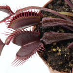 Feeding and Fertilizer: Venus flytraps will catch plenty of food when grown outdoors. When grown indoors, they will significantly benefit from fertilizing, a foliar fertilizer, and feeding the traps. Plants grown outdoors will appreciate a foliar feed as well. Apply MaxSea fertilizer once per month to the foliage only. Dilute 1/4 teaspoon of MaxSea into one gallon of water and then apply to the traps with a mister bottle. If you would like to feed the traps of your flytrap, it is recommended that you use live prey, as the traps usually require continued movement from their food to stimulate the complete absorption process. They will often open too soon if fed inert foods and do not absorb nutrients. We recommend live mealworms, which are available from any pet store. After digestion, Venus flytraps open back up, leaving the exoskeleton of their prey. They have liquified and absorbed the contents of the insect, but the exoskeleton remains. This does not need to be removed. Traps often die back after a big meal; new ones will grow, and the plant benefits greatly from the nutrients!