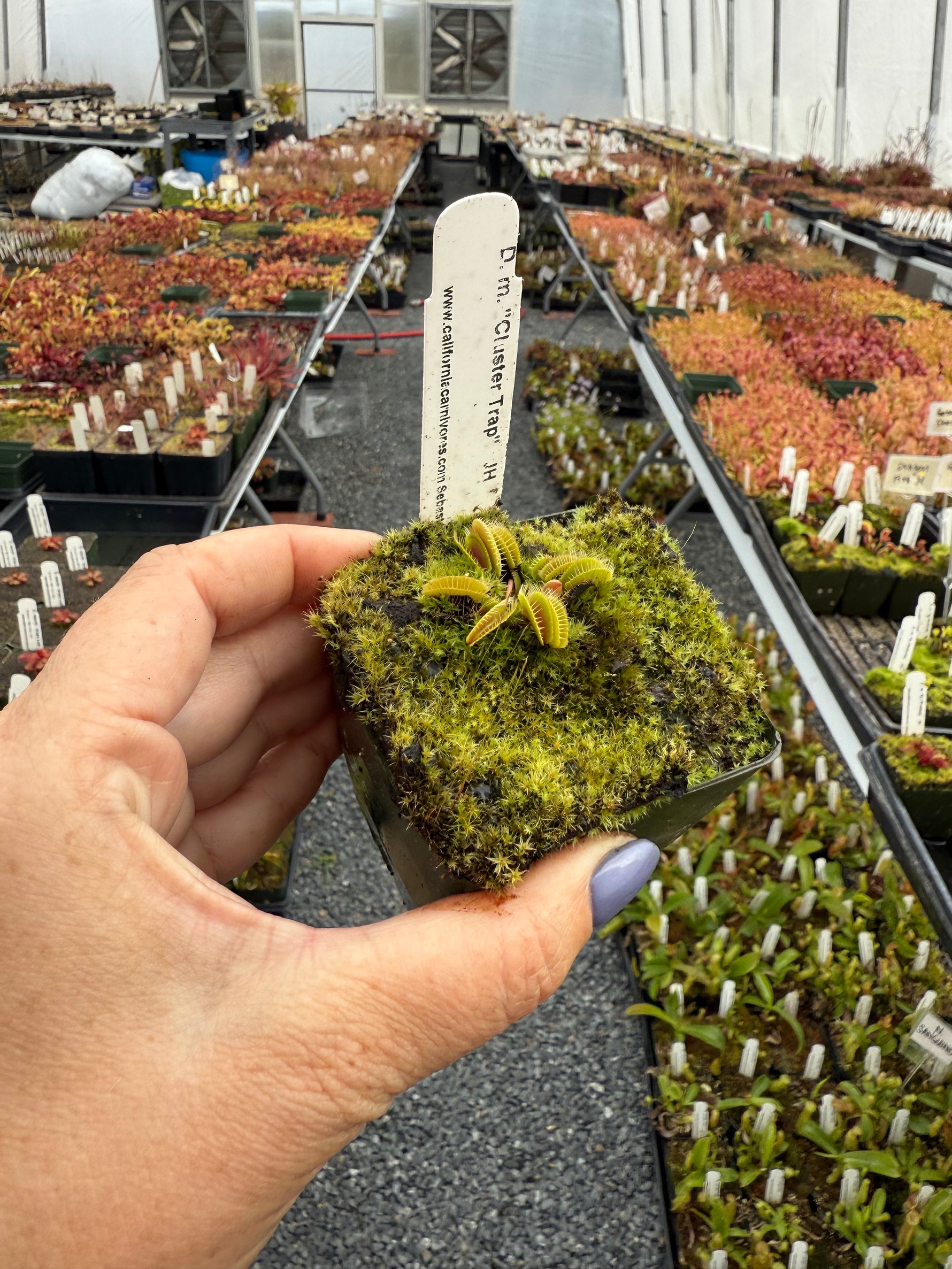 Dionaea m. “Cluster Trap” is an unusual and beautiful cultivar! It has low-lying, tight traps that are long and slender. It can form very long traps as well!