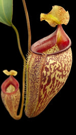 Nepenthes talangensis Is a beautiful classic highland species. The deeply inset peristome is usually a solid deep red, contrasting with the red and green speckled pitcher body.