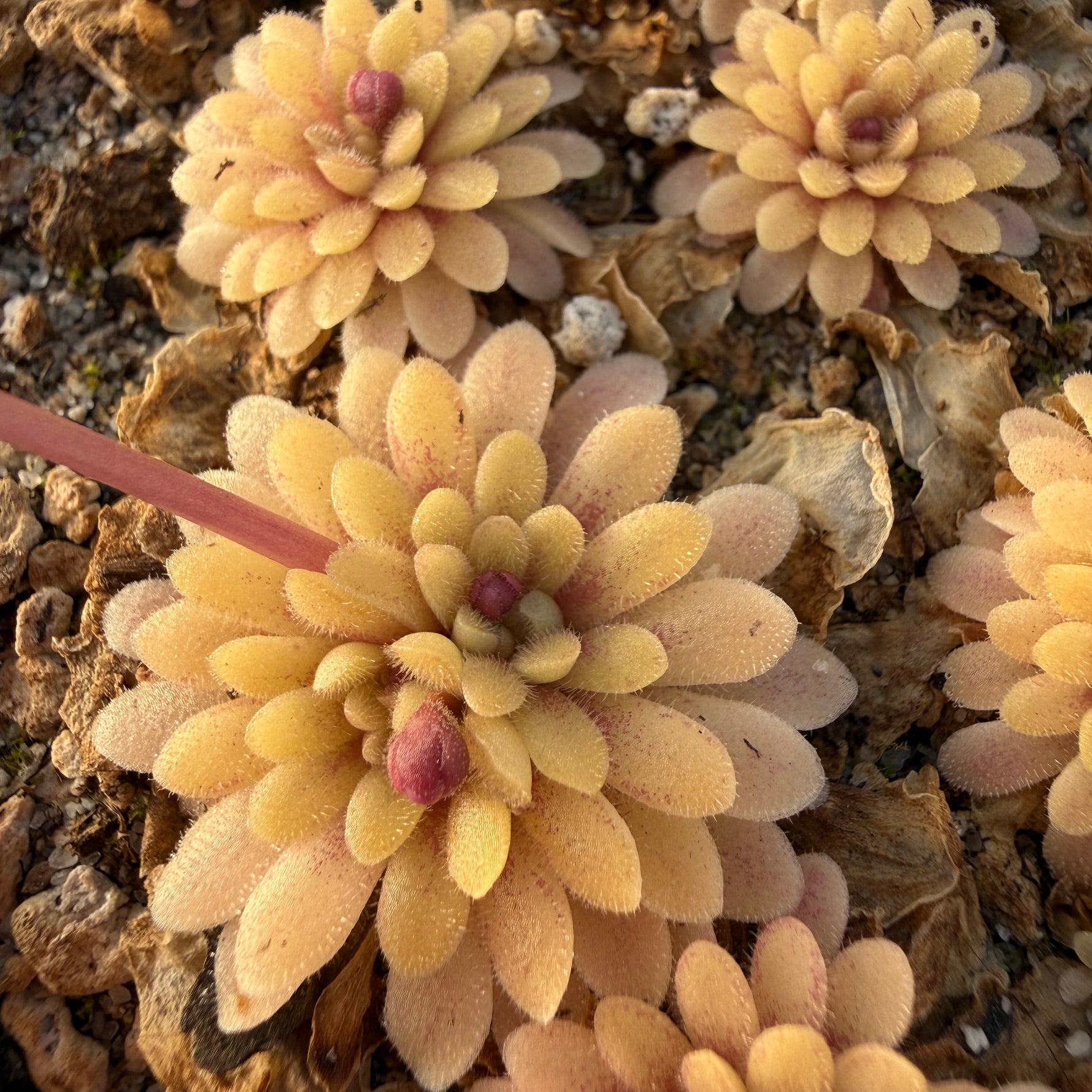Pinguicula x “Kaiberdo” is our first new introduction for 2026 along with its sibling “Kaiberdon’t.” Damon was super excited to make crosses with ‘Florian’ so that we could create beautiful, compact, little floriferous cultivars like these. “Kaiberdo” is named for Tiffany’s son, she is our mail order queen and we couldn’t do this without her! Like Kai himself, this cross has turned out to be everything we’d hoped for and more! The little rosy, compact rosettes look exactly like hen and chicks echeveria in their succulent phase. The rosy-pink flowers have a neon yellow throat and gently nod, disproportionately large to the plant! Ideal for ping rocks and tea cups.