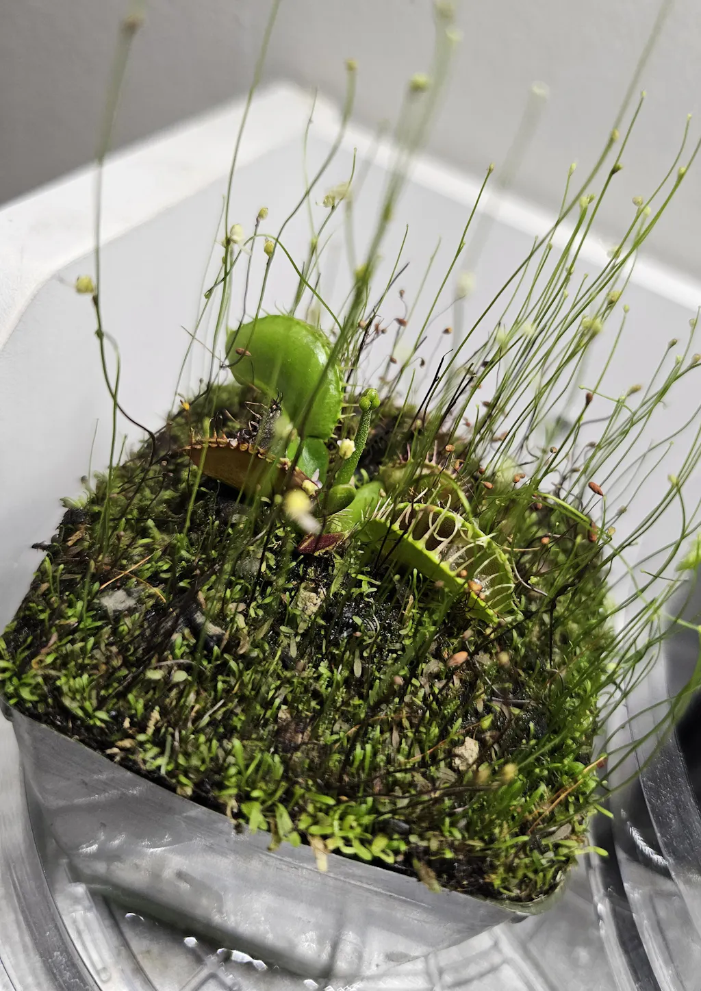 A vicious looking form of the Venus flytrap, 'Dente' has little shark's teeth lining the trap instead of the more typical eyelash-like structures.