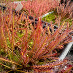 Soil and Repotting: We prefer a mix of four-part fertilizer-free peat moss to one-part perlite. You can add our pre-made mix to your order here. You do not need to repot your plant when you receive it from us for at least a year, and we recommend against it during the spring-summer months. Repot Drosera every 3 years in winter when they are dormant. Avoid placing in excessively large pots; size up only a few inches at a time. They do well in tall pots. Soil can also develop a swampy smell, especially right after shipping, when the plant is wrapped in plastic and sealed. This is normal; these plants grow naturally in bogs and swampy conditions, and peat moss can develop a bit of an anaerobic smell, but this does not indicate a problem with the soil.