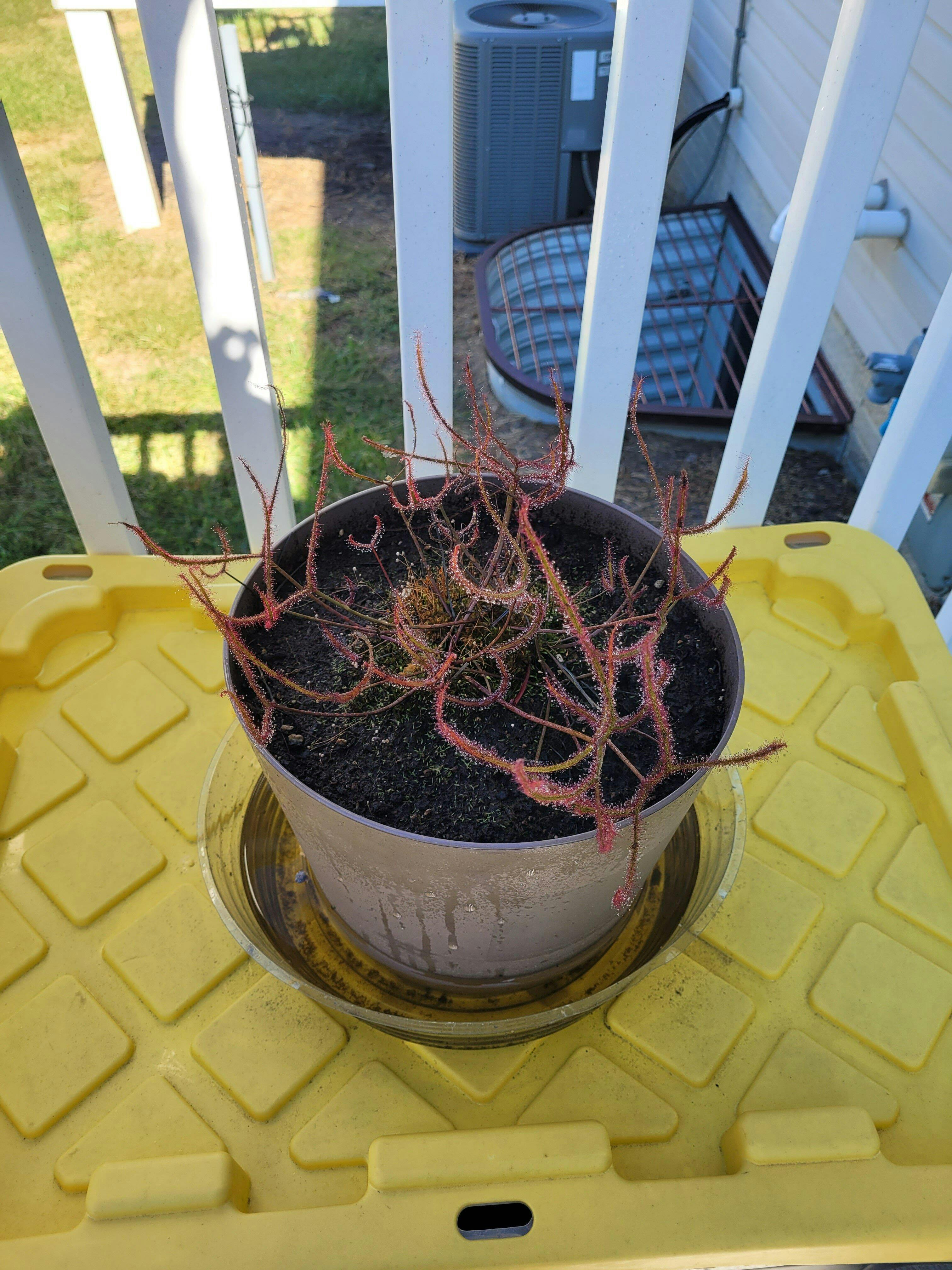 SUN: Full sun. It is common for several of the traps to "burn" and die back when you first put it into the sun, it is just getting used to the full sun exposure and it will quickly grow new traps. They will thrive in full sun, meaning at least six hours of direct light. You can grow them indoors on a very, very sunny windowsill or in a terrarium under grow lights but they generally do best outdoors. Also, if you grow them indoors be sure to provide them with a winter dormancy.
