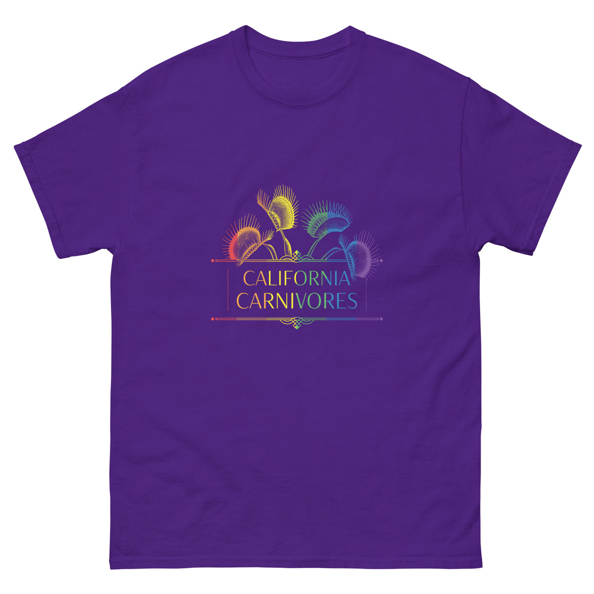 California Carnivores has been in business since 1989! Over the decades our logo may have changed but our dedication to cultivating and conserving carnivorous plants hasn't! We're one of the OG carnivorous plant nurseries in the world; spending decades carefully collecting and breeding these charismatic plants so we can make them available to you. We are also a proudly gay owned company. This is one of our favorite shirts because it is everything we are.