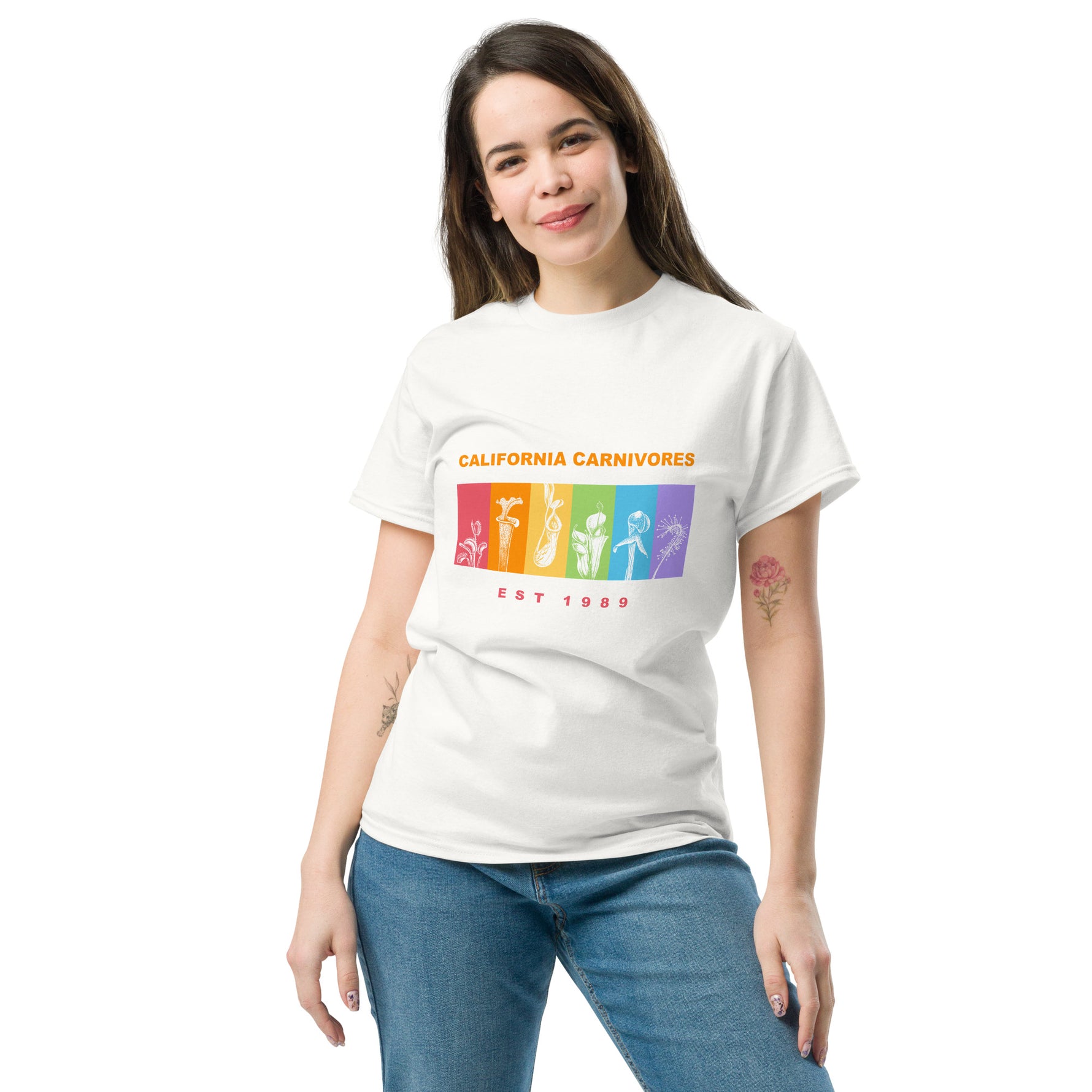 California Carnivores has been in business since 1989! Over the decades our logo may have changed but our dedication to cultivating and conserving carnivorous plants hasn't! We're one of the OG carnivorous plant nurseries in the world; spending decades carefully collecting and breeding these charismatic plants so we can make them available to you. We are also a proudly gay owned company. This is one of our favorite shirts because it is everything we are.