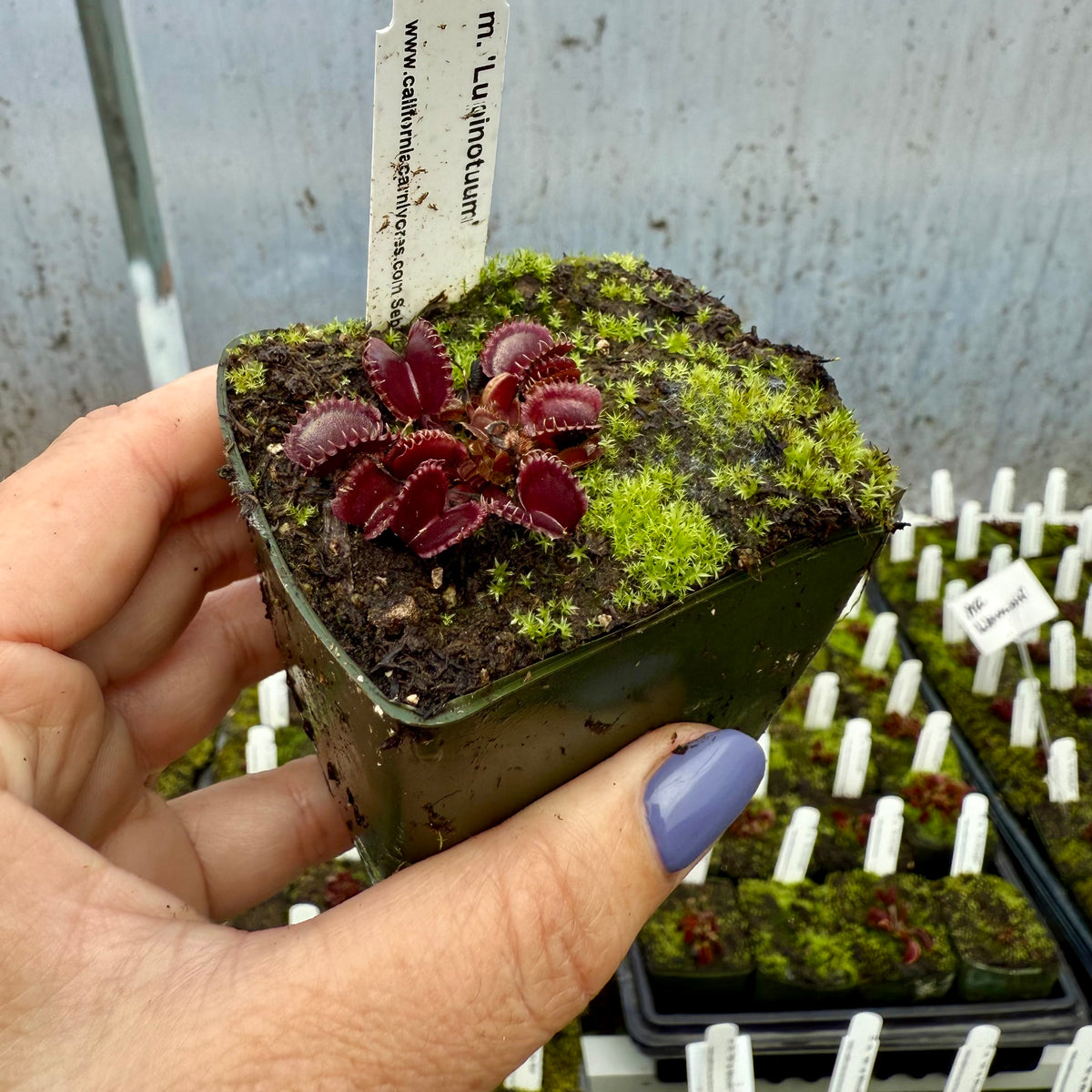 Dionaea m. “Lupinotuum” is an exceptional upright Venus flytrap selection that was previously named “AR Werewolf 2”. “Lupinotuum” beautifully combines the striking features of the renowned Werewolf and Akai Ryu.