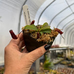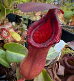 Nepenthes lowii x ventricosa “red” has gourd-shaped pitchers, deep red, and finely toothed peristomes. This has the fantastic shape of lowii with the ease of ventricosa! Plants from this parentage are always fantastic: vigorous, bright red pitchers and unbelievably fun to grow!