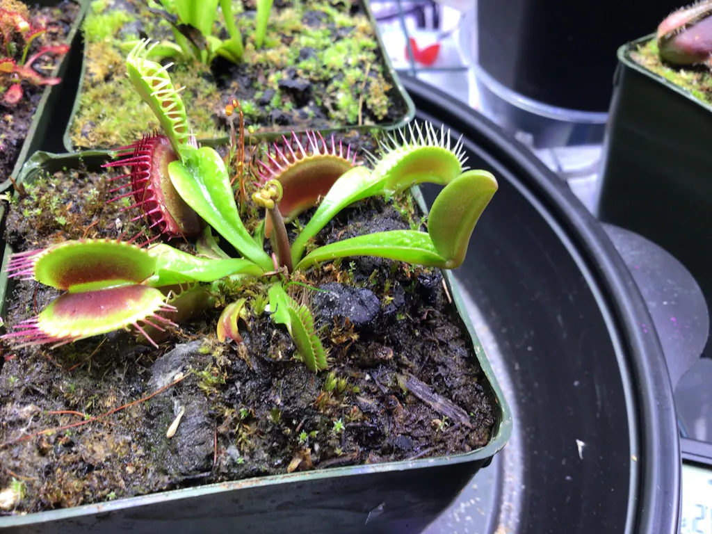 Water & Humidity: In the late spring, summer, and early autumn, Pinguicula can be kept in the tray system with overhead watering as long as they still have carnivorous foliage. This means setting the pots in a deep saucer or tray and routinely filling that with 1/4”-1/2” water. If grown in a non-draining pot, allow room to water and water overhead frequently to keep soil media moist but do not water so deeply as to have standing water sitting on the surface of the soil, all the water should be absorbed. When the rosettes show their very first signs of growing their smaller, tighter succulent leaves immediately begin to dry out your plants. Keep the soil on the dry side, watering them only a little and let dry out in between watering. You can usually tell how dry a species enjoys its winter by the size of its succulent leaves. The tighter, smaller leafed rosettes such a Pinguicula gypsicola or the bulb-like heterophylla and macrophylla require bone-dry conditions. Species with larger winter leaves, like a few of the moranensis varieties or agnata, enjoy winters soils just slightly damp. Cuban species should be kept wet year-round, with only slight winter drying. When these plants are transitioning between carnivorous and succulent growth they are at the most risk of rotting, so it is better to air on the side of drier when the temperatures start to get colder and the photo periods shorten. In spring, as soon as the temperatures start to warm and the photo periods lengthen, start watering your plants more. When carnivorous leaves start to grow, begin the tray method again. (If your plant decides it does not want to make carnivorous leaves, don’t worry, sometimes they are stubborn! Water frequently and make sure your plant gets lots of light, preferably some natural light from the sun as well, to try to trigger carnivorous leaf growth. But don’t worry if your ping stays in succulent mode for a whole year, eventually it will grow carnivorous leaves again!) Pinguicula are extremely susceptible to dissolved minerals and salts in their water and poor water quality will directly contribute to decline of plants and death. Be sure to only use rainwater, reverse osmosis water, or distilled water. Pinguicula prefer drier conditions and do not require high humidity.