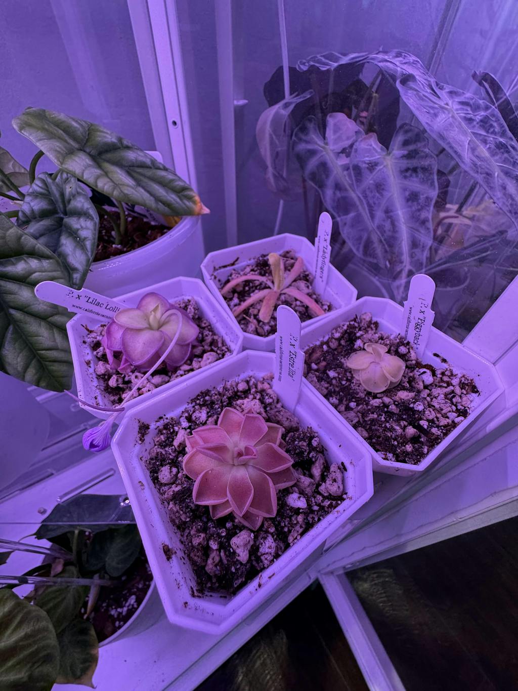 Water & Humidity: In the late spring, summer, and early autumn, Pinguicula can be kept in the tray system with overhead watering as long as they still have carnivorous foliage. This means setting the pots in a deep saucer or tray and routinely filling that with 1/4”-1/2” water. If grown in a non-draining pot, allow room to water and water overhead frequently to keep soil media moist, but do not water so deeply as to have standing water sitting on the surface of the soil; all the water should be absorbed. When the rosettes show their very first signs of growing their smaller, tighter succulent leaves immediately begin to dry out your plants. Keep the soil on the dry side, watering them only a little and let dry out in between watering. You can usually tell how dry a species enjoys its winter by the size of its succulent leaves. The tighter, smaller leafed rosettes such a Pinguicula gypsicola or the bulb-like heterophylla and macrophylla require bone-dry conditions. Species with larger winter leaves, like a few of the moranensis varieties or agnata, enjoy winters soils just slightly damp. Cuban species should be kept wet year-round, with only slight winter drying. When these plants are transitioning between carnivorous and succulent growth they are at the most risk of rotting, so it is better to air on the side of drier when the temperatures start to get colder and the photo periods shorten. In spring, as soon as the temperatures start to warm and the photo periods lengthen, start watering your plants more. When carnivorous leaves start to grow, begin the tray method again. (If your plant decides it does not want to make carnivorous leaves, don’t worry, sometimes they are stubborn! Water frequently and make sure your plant gets lots of light, preferably some natural light from the sun as well, to try to trigger carnivorous leaf growth. But don’t worry if your ping stays in succulent mode for a whole year, eventually it will grow carnivorous leaves again!) Pinguicula are extremely susceptible to dissolved minerals and salts in their water and poor water quality will directly contribute to decline of plants and death. Be sure to only use rainwater, reverse osmosis water, or distilled water. Pinguicula prefer drier conditions and do not require high humidity.