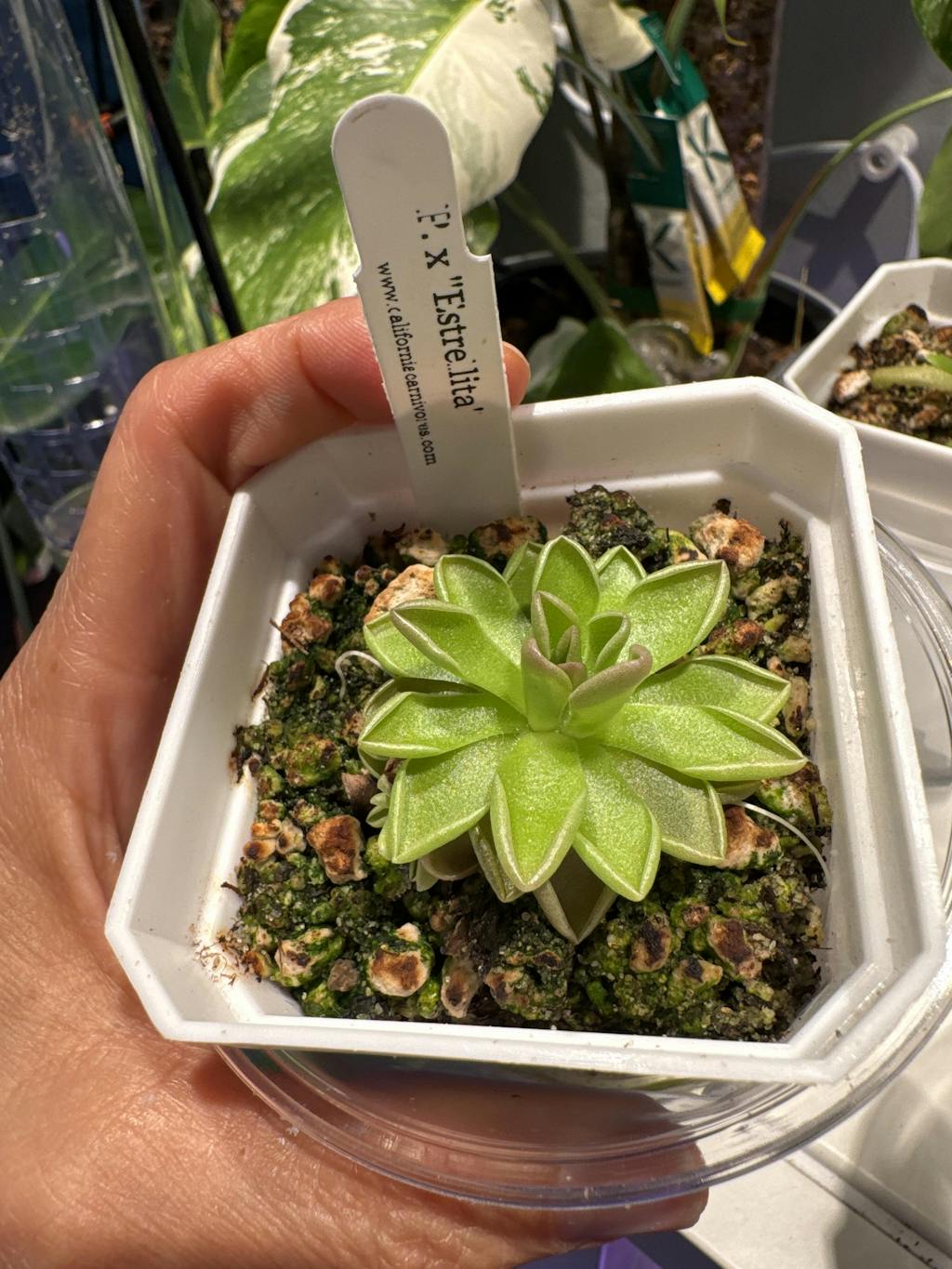 Pinguicula x “Estrellita” is a hybrid between ehlersiae and mesophytica from the master hybridizers at Rainbow Carnivorous Plants. Named for its charming star-shaped rosette, this plant will blush deep pink when grown in intense light. Its flowers with long, delicate petals in a bright magenta color.